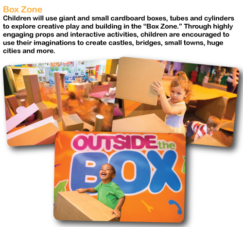 Thinking outside the box has never been so fun! The feature exhibit at The Children’s Museum of Atlanta taps into the imaginative minds of children to encourage “outside of the box” thought, innovation and exploration. Through highly engaging props, activities and lots of interactive fun, children can discover the building blocks of math, engineering and technology.